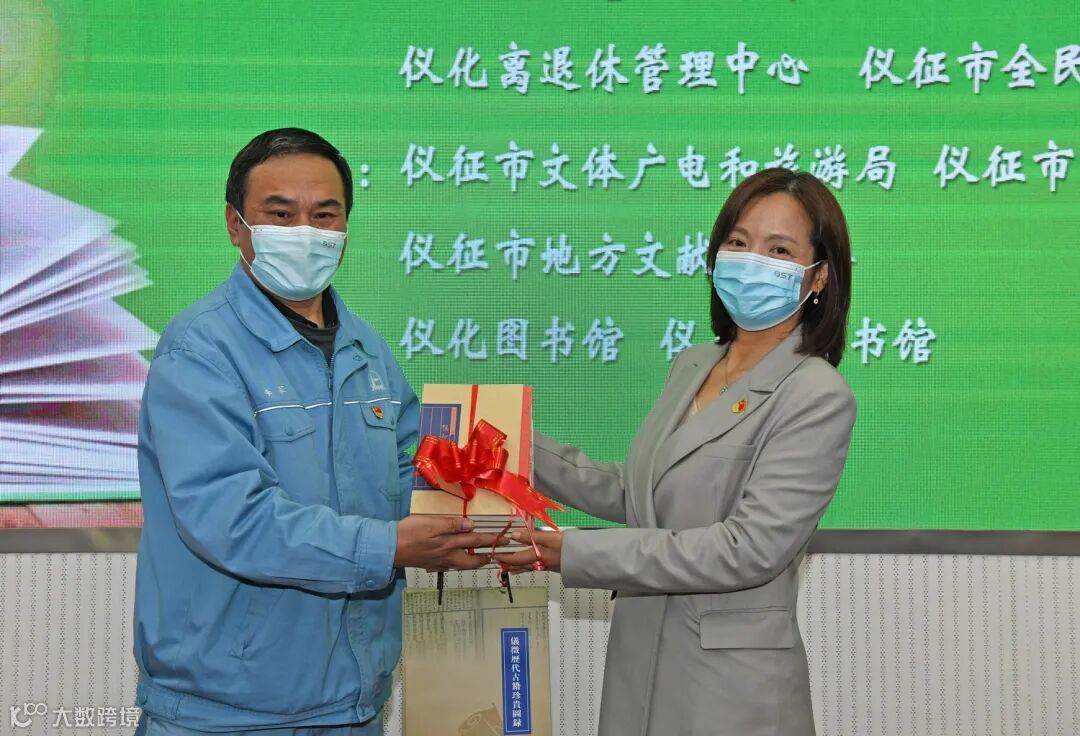仪征市图书馆向仪化图书馆赠送了《仪征历代古籍珍贵图录》《仪征文献》。
