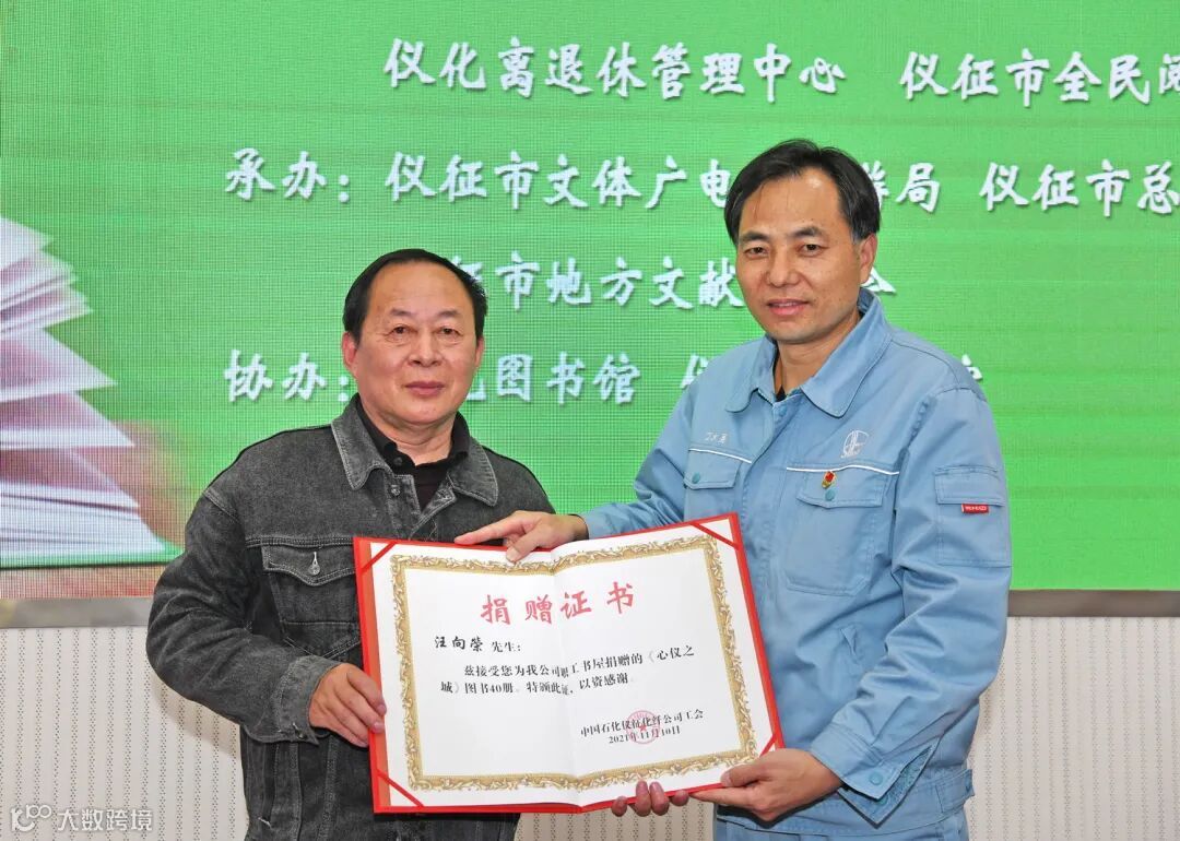 汪向荣先生向仪化职工书屋、仪化图书馆赠送了最新力作《心仪之城》。