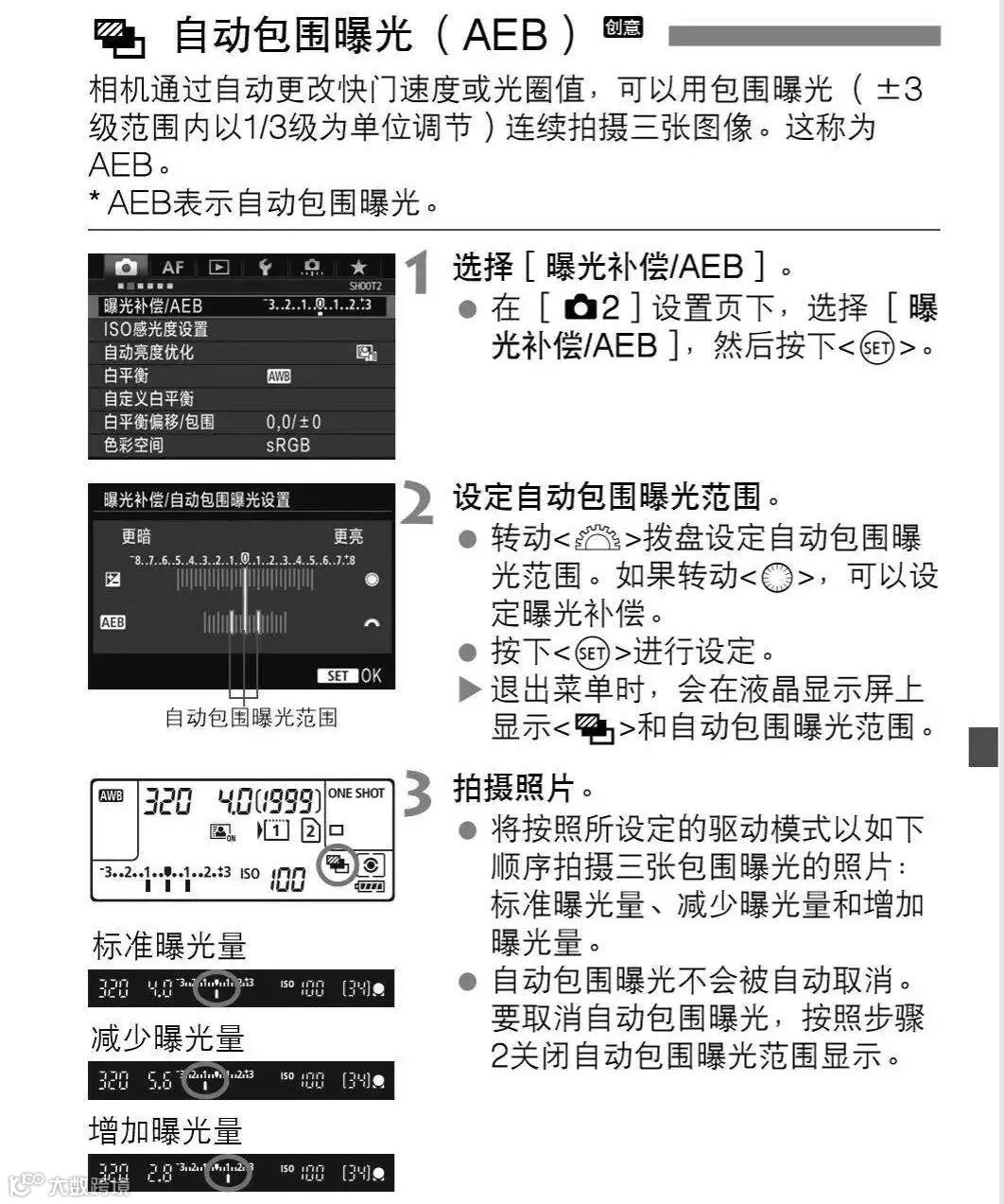 不过,部分相机也有内置的“自动包围曝光”功能,