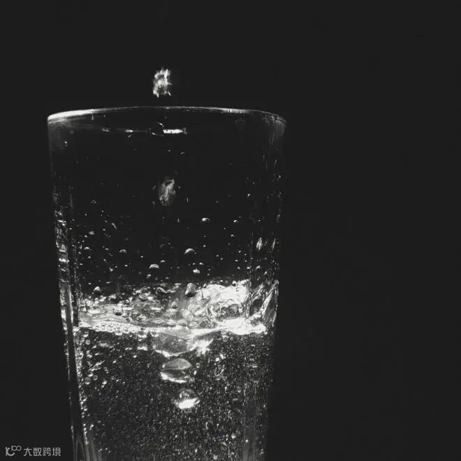 水面上荡漾了几道涟漪。这是个很有意思的瞬间,它让我们看到了这滴水在进到水里的那一刻的状态和水面的变化。水面被溅起一个皇冠状的水花;并且水滴还被弹出水面形成一个漂亮的小球。
