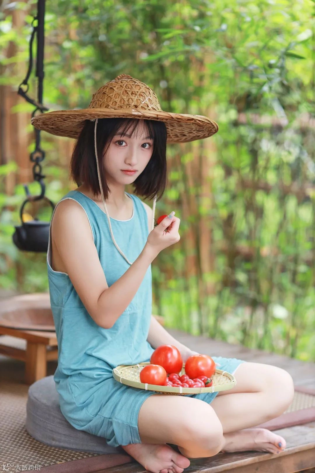 为了拍摄出亲近自然且充满郊野气息的照片,我来到了位于武汉市郊的一处露营公园。这里拥有多样的场景,充满田园气息的装饰。第一个拍摄场景我便选择在夏日田园风的户外木亭,这个场景被赋予了民间的生活气息,再搭配竹席、草帽、竹扇、木桌、果蔬、竹篮都是能体现出田园风格的装饰道具。