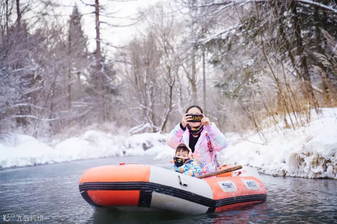 一艘橡皮船只能坐2个人,我和老婆开启互拍模式。