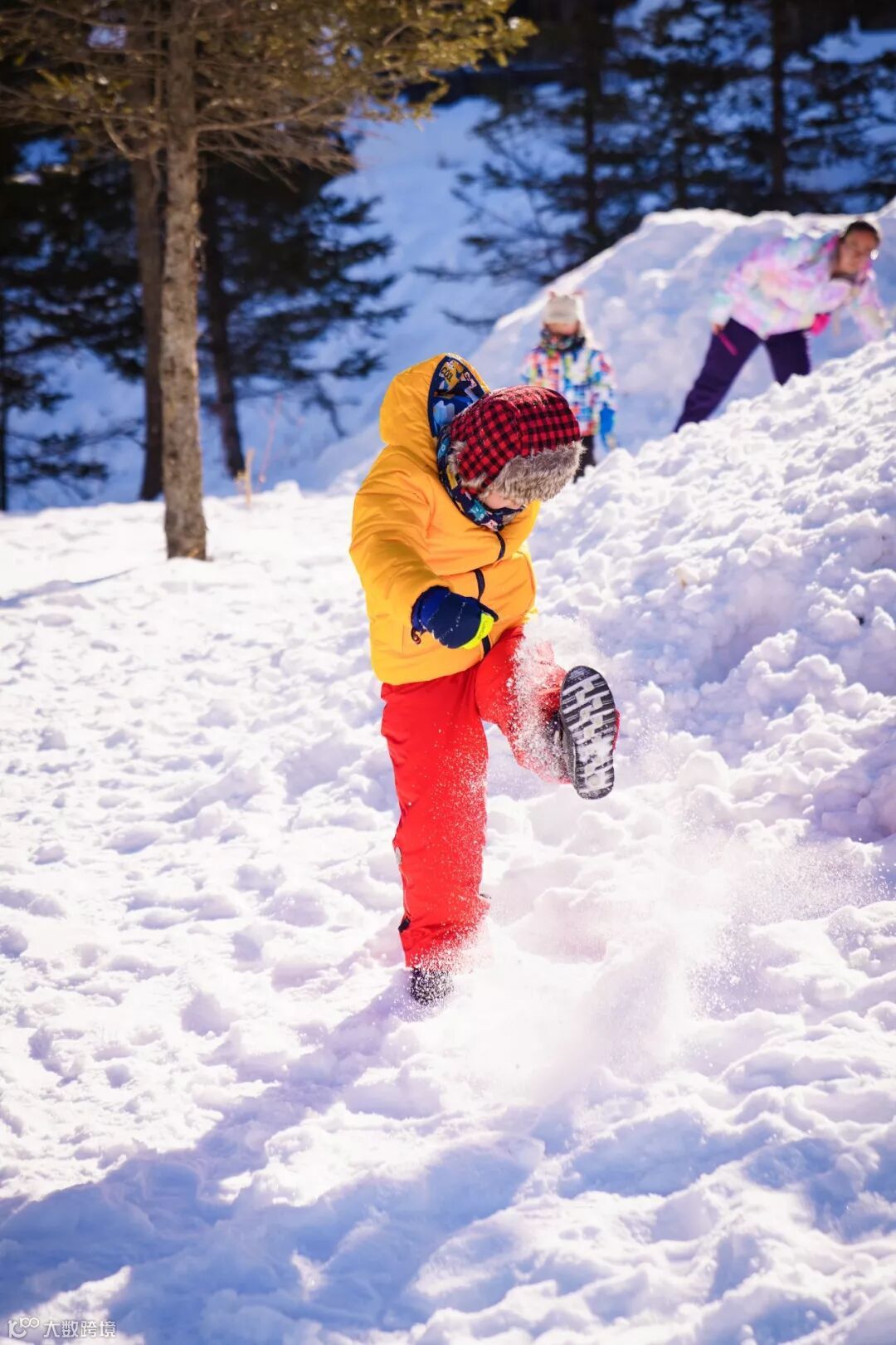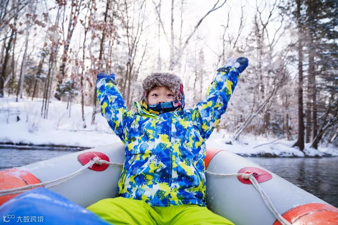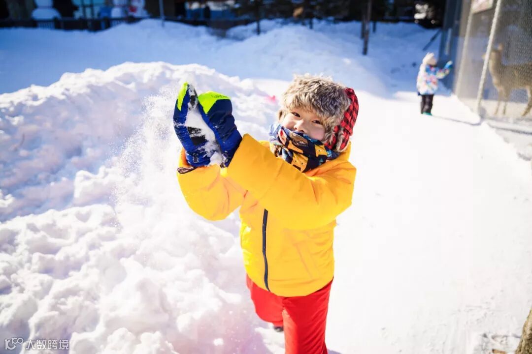 结果大宝发现新大陆,伸手去掏沿岸的积雪,玩的不亦悦乎。