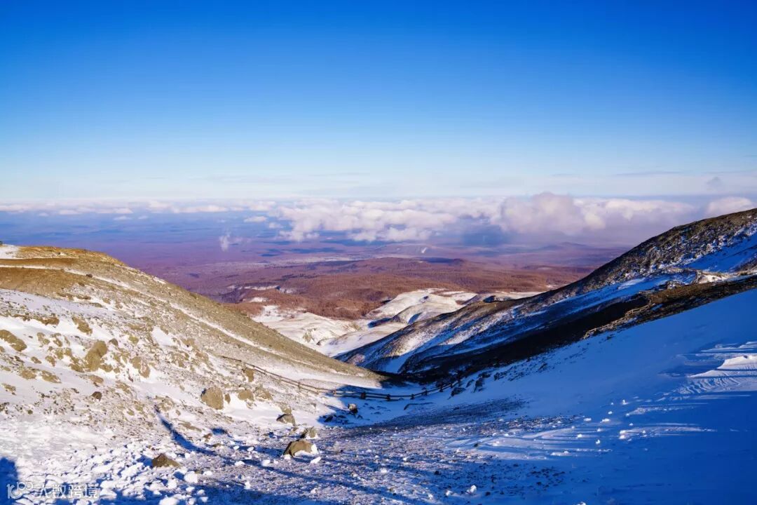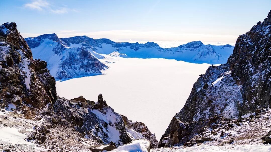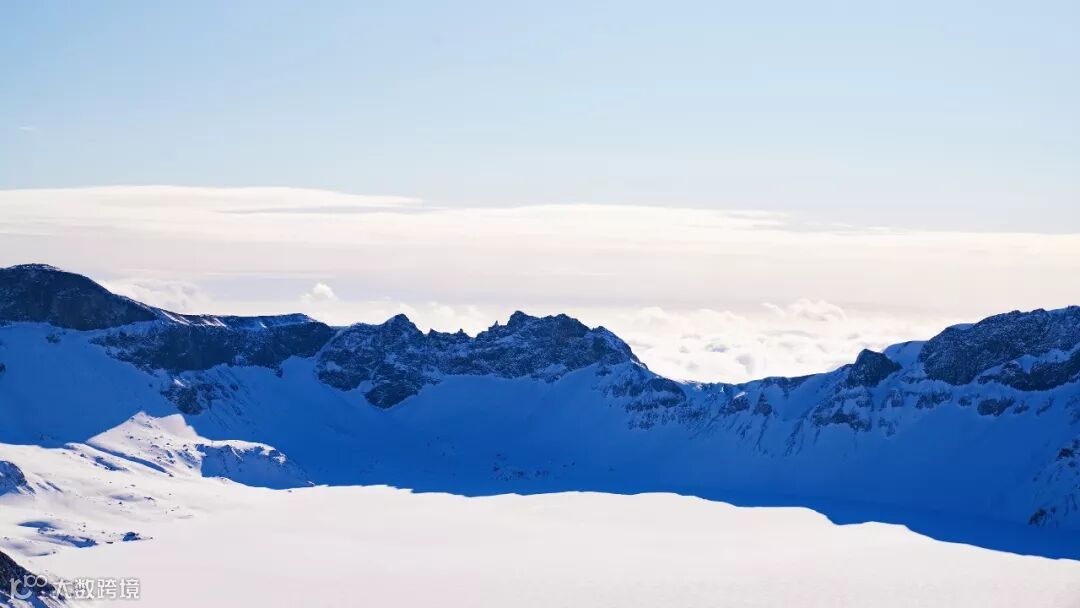 山顶温度达到零下四十多度,风力八级,在户外待一分钟都是折磨。好在下车走到天池观景台,只有三分钟的路程,还是能坚持一下的。