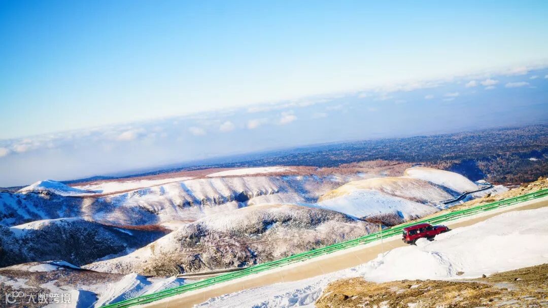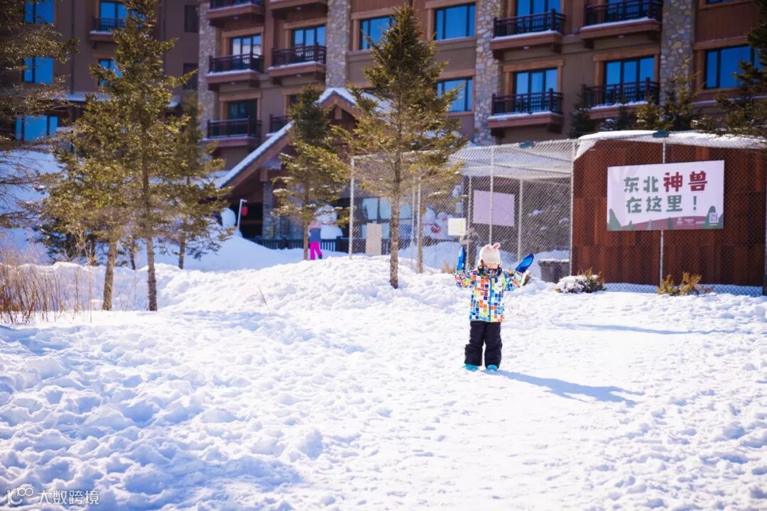 正当我们享受着魔界的美丽风景时,二宝突然喊脚疼。结果只能匆匆结束行程,拼命滑向终点,上车取暖。想来大概因为二宝一直盘腿坐在妈妈的怀里,导致血液不畅,被冻着了,在车上暖和了一会儿便没事了。于是继续驱车前往下一个目的地:长白山天池。到达景区售票大厅时,天空飘起了雪,不仅感慨连售票厅都这么美。山上一定更赞。