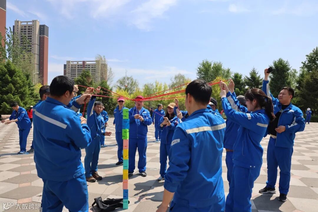 在“摸石过河”、“齐心协力”等互动游戏环节,队员们分工协作,默契配合,挥洒汗水,凝聚力量,一路闯关卡,迎挑战,向着最后的胜利进发冲刺。