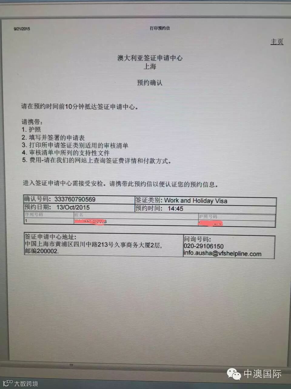 经过一上午的努力,中澳国际和重庆澳发公司共计抢到30个名额,也就是说,所有通过我们报名预约的客户我们都成功的抢到了宝贵的名额!我们已经把每位客户的资料准备充分,只待各位客户通过审核成功获得签证!