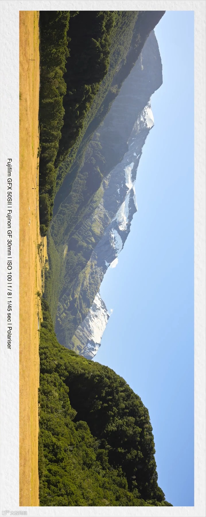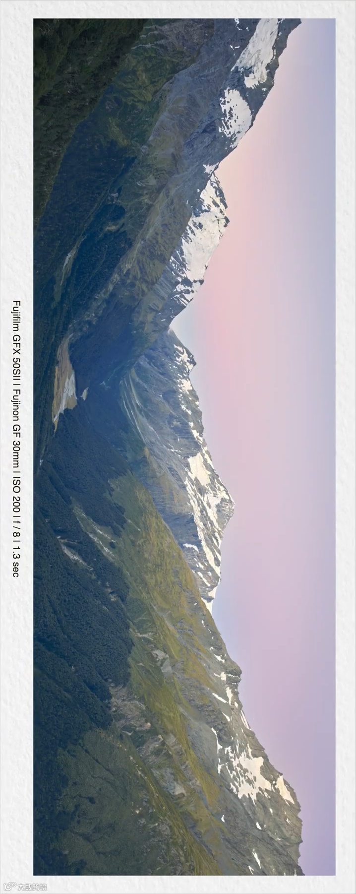 我想大概说说我的构图思路。这是我们的老朋友 GFX50S II,三脚架当然是必不可少的,镜头也还是GF30mmF3.5 R WR。因为我们需要拍摄的还是较大的景别,来看看我选择的构图,虽然屏幕有点小,但不难看出这简洁而庄严的画面。全景拍摄看着很不错。