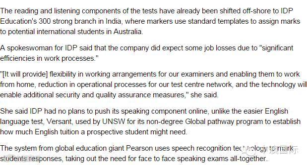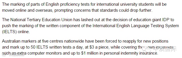 关于雅思评分要转向海外一事流言纷纷,The Age 发表了一篇“International Students:Intenational English Language Testing System marking moves online and overseas”