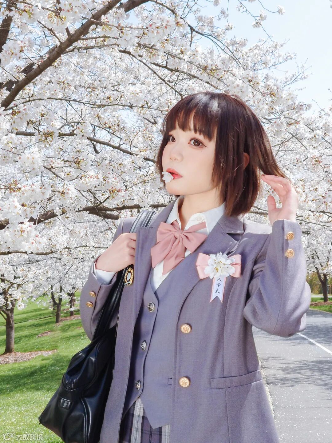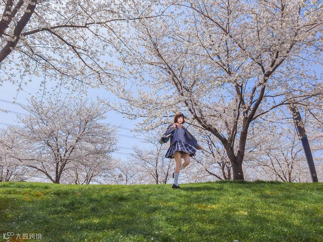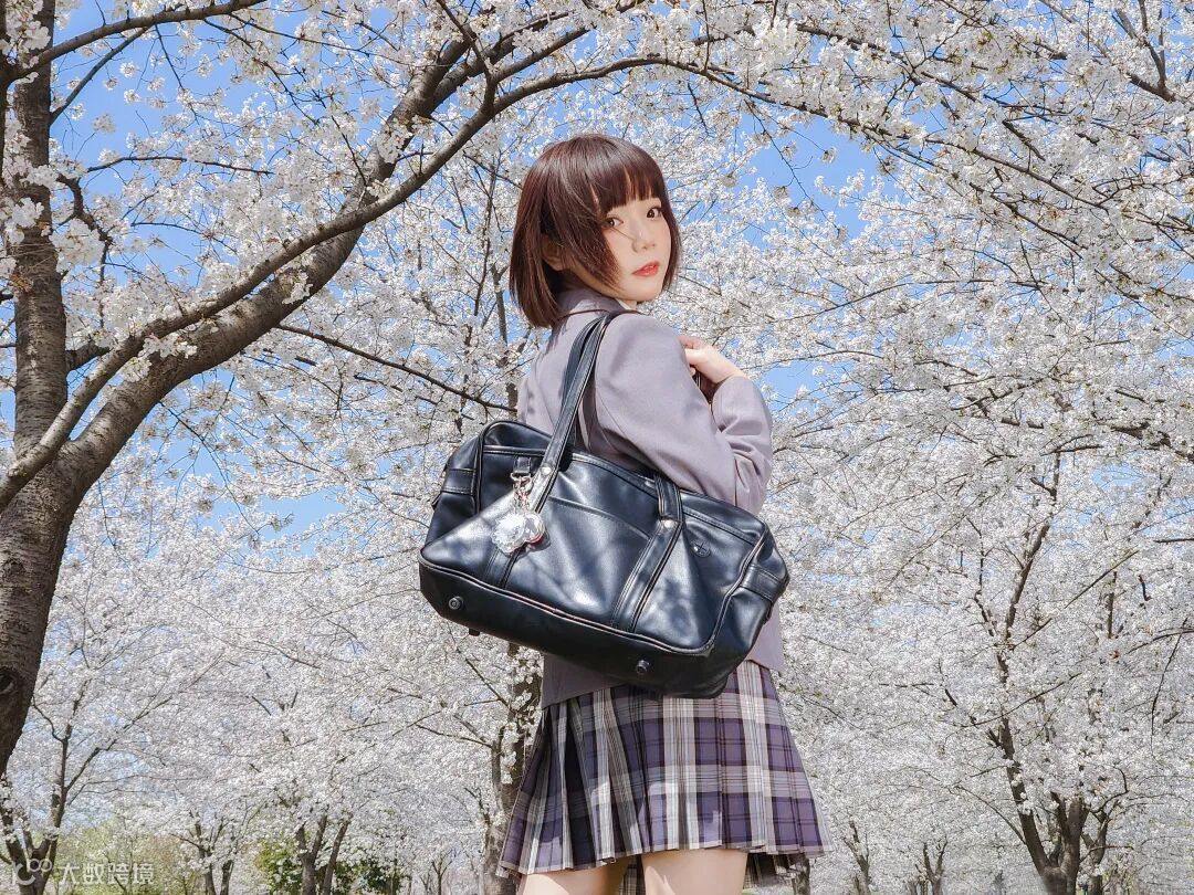 同样是仰拍,我们除了能带到地面拍摄大场景外,还可以直接通过贴近人物来进行仰拍。这样做的最大的好处,就是直接将地面上的元素全部排除在画面之外,即便人再多,都不会干扰到画面。而人物身后,那满满盛开的樱花,就是最美的背景!
