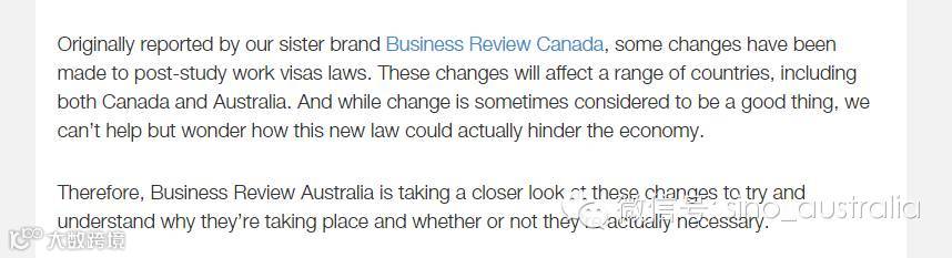 人家是Business review Canada的报道,没错加拿大是对PSW签证进行了改革,而全文也就是分析了一下这个改革在澳洲要是施行了会有什么影响,有没有必要,这说白了就是一篇专家们意淫出来的文章,请大家不要跟风相信好么!