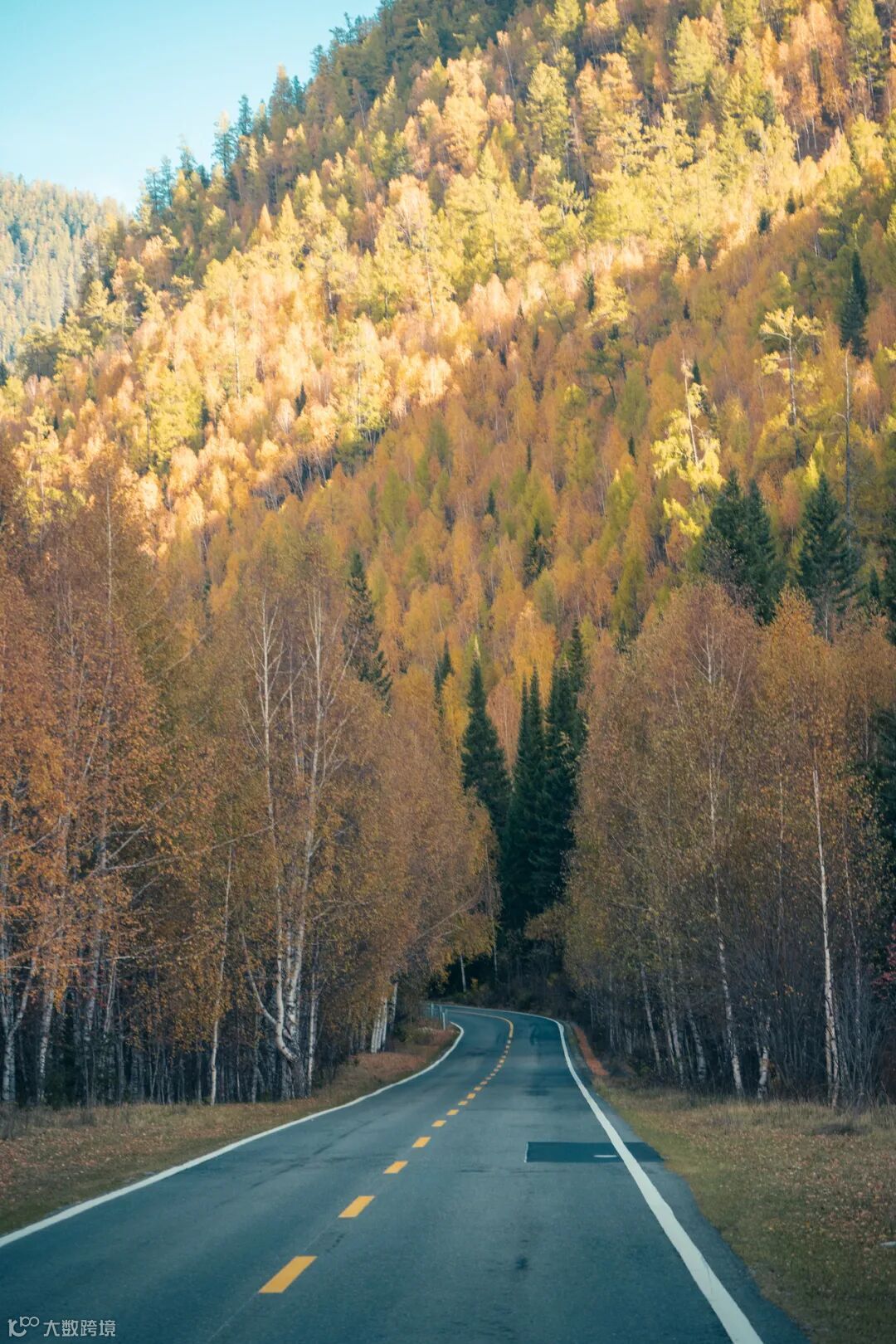 在回酒店的路上,偶然发现这条马路蜿蜒曲折,远方又是超级好看的秋色,我愿意把这个场景定义为:秋色的入口。