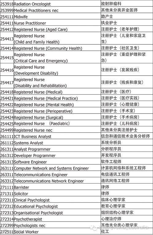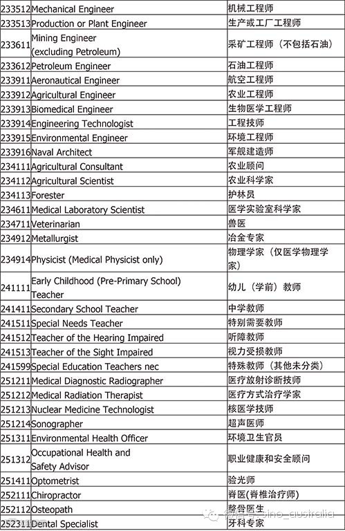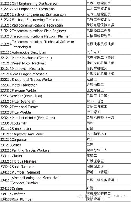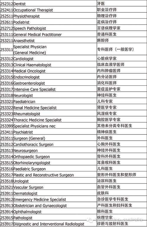 下面是完整的职业列表,从2014年7月1日起正式使用