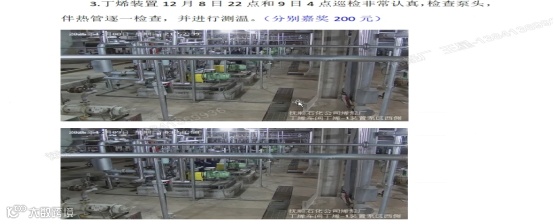我们加大机泵、压缩机等89台转动设备巡检频次,及时处置跑冒滴漏问题。装置内丁二烯单元投用12座伴热站、86条伴热线,丁烯-1单元投用6座伴热站、53条伴热线,均保持完好运行状态。