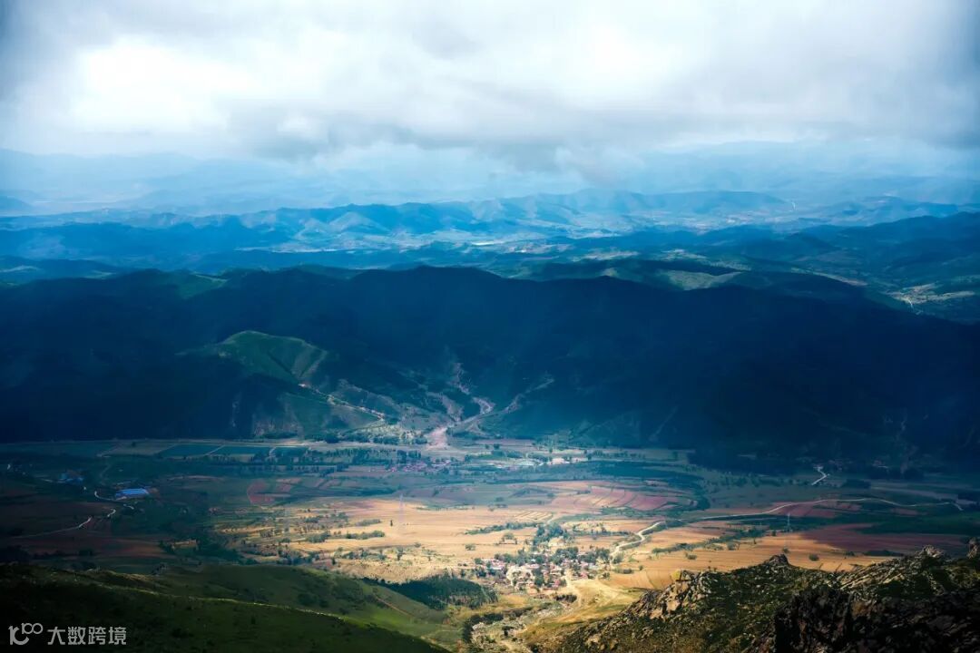 站在香山的后山俯瞰日落前的京城,一场突如其来的降水插曲带来了一道意外的彩虹。