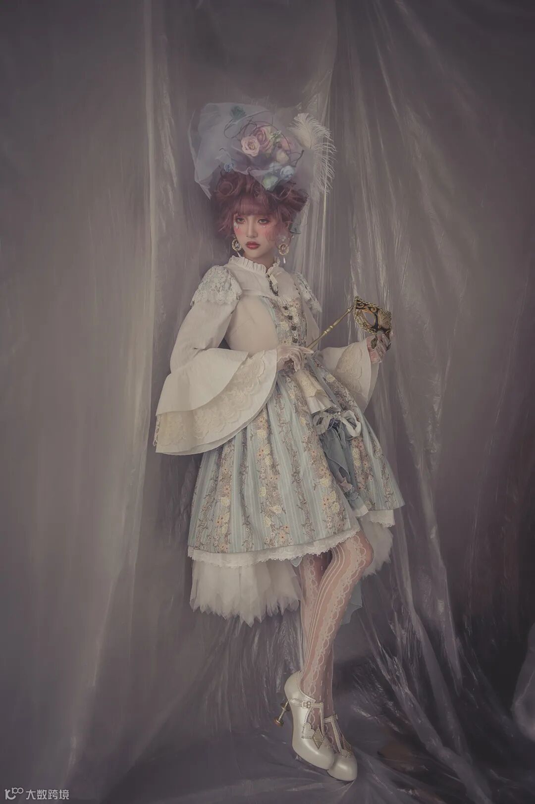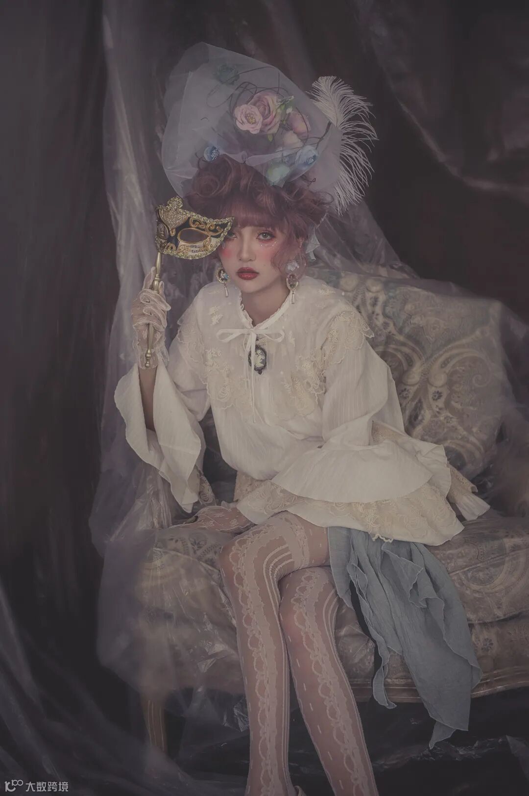 此次复古风格的洛丽塔拍摄,人物和服饰的颜色都相对较淡,而深色的背景和侧光光线,则有些脱离创意调性,反差对比略大,这就需要后期修饰时,将暗部层次调整出来。这时就体现出尼康Z 6良好的高宽容度性能,即便前期曝光略微不足,通过后期调整也可以获得丰富的细节层次。