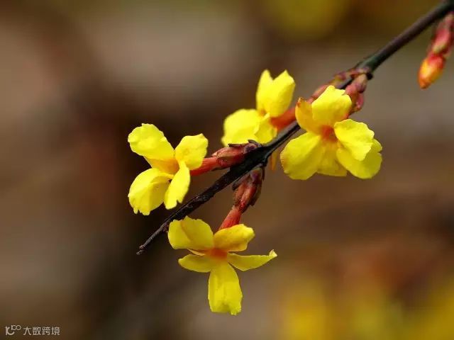 迎春花的枝条比较多,很容易拍出来显得杂乱,因此可以选中一枝突出,背景虚化。
