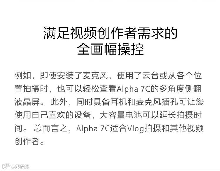 索尼正式发布轻便小巧的全画幅微单™ Alpha 7C(型号名:ILCE-7C)。Alpha 7C是一款时尚小巧,轻量便携的全画幅相机,同时具备先进的自动对焦和4K*1视频拍摄等专业性能。与新开发的紧凑型FE 28-60mm F4-5.6标准变焦镜头搭配使用时,可提供与众不同的拍摄体验,大幅提高了便携性和专业性,同时又提供了出色的全画幅影像拍摄能力。Alpha 7C相机和FE 28-60mm F4-5.6变焦镜头采用新设计,融合了索尼众多先进的影像技术,组合成索尼最小最轻的全画幅影像拍摄系统,开辟了新的创作可能性,让用户轻松享受全画幅影像乐趣。