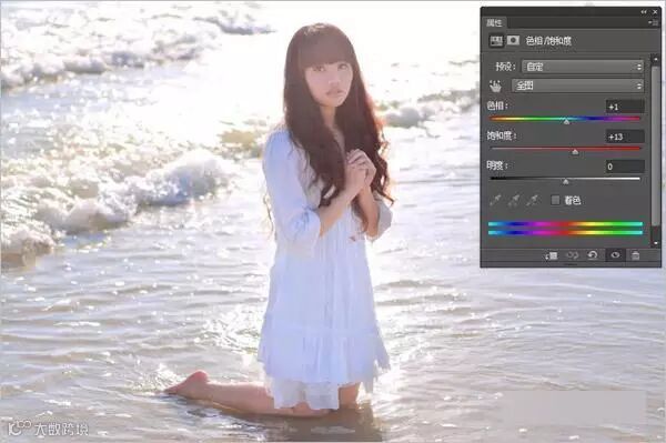 3、因为逆光颜色容易灰掉,所以增加饱和(色彩调节根据主题每幅有所不同)