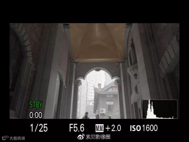 上图中下方的“M.M.”即为曝光指引,现在显示的“+2.0”的意思比标准曝光高出两档。这里需要注意的是曝光指引的显示范围是正负两档,超过两档也只显示两档。一般场景下,S-Log素材过曝两档左右比较合适。如果遇到光比超大的场景,就需要根据需要进行具体判断了。通过曝光指引来进行曝光相比前两种方法,精确度要略弱一些。