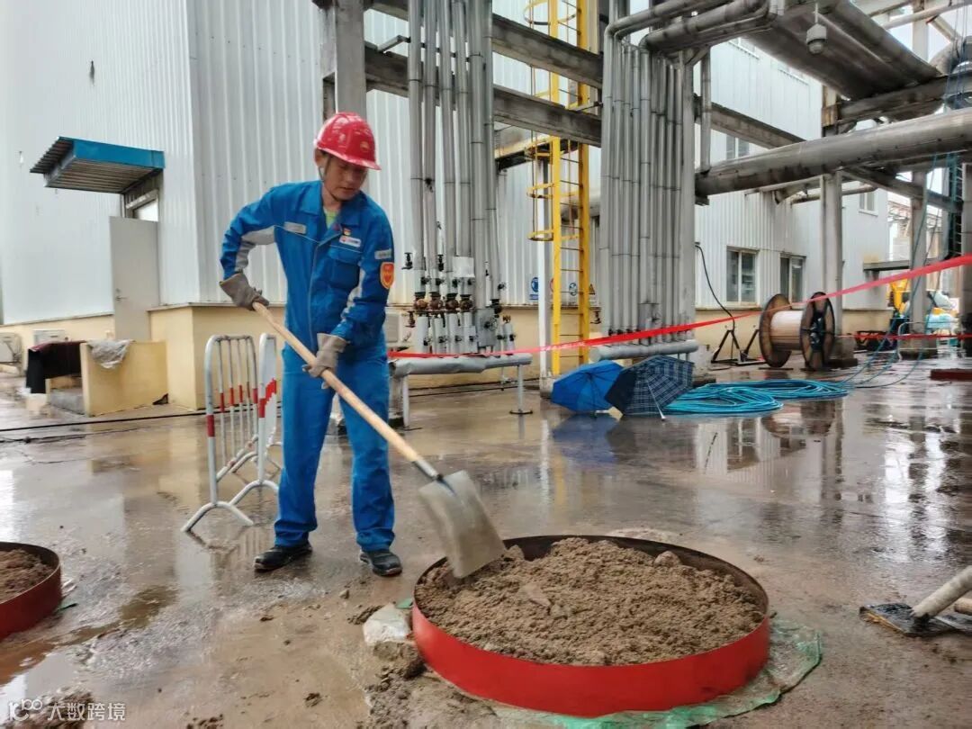 大检修期间,正值雨季汛期来临,研究院炼油化工研究所员工积极行动,整理防汛沙袋,准备雨靴、铁锹等防汛物资,并对排水设施进行排查清淤。大家分工协作,有序搬运和清点,确保物资齐全、到位可用,为应对极端天气做足准备,全力保障公司检修期间人员和设备安全,展现了科研人员高度的责任意识和团队协作精神。