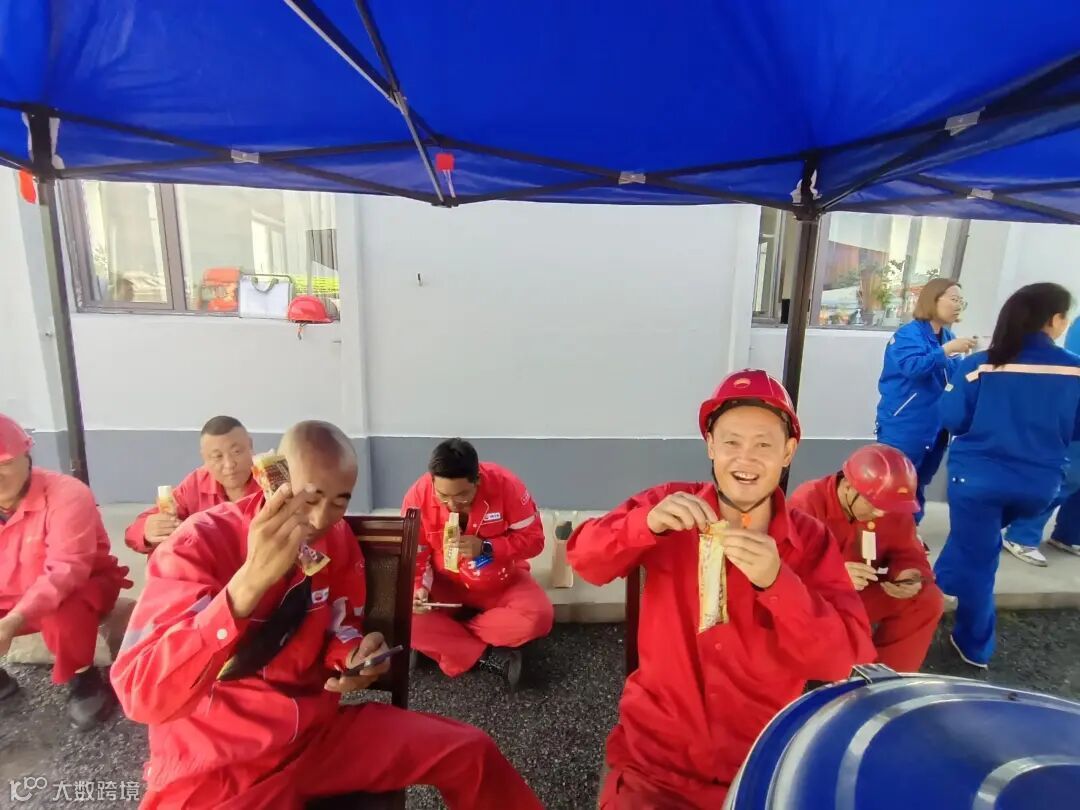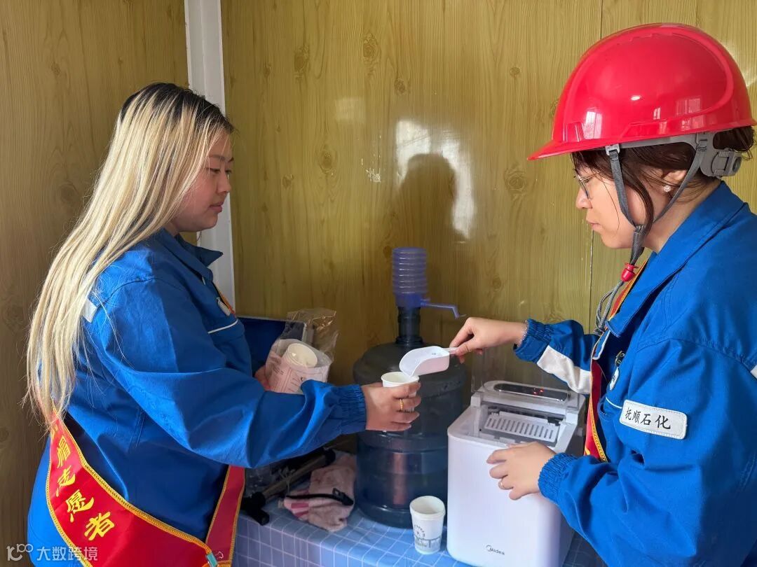 大检修期间,北天石化清洗公司志愿服务如一阵清风,拂过忙碌的检修场。他们迅速搭建“服务大检修”站点,备齐酸梅汤、西瓜、泡面、盒饭等物资。正午暑热,地表蒸腾着热气,检修工人额头的汗珠不断滚落,志愿者们及时递上冰爽的酸梅汤,递来清甜多汁的西瓜。深夜检修不停,厂区里机器轰鸣,志愿者们又将泡好的热乎泡面送到工人手中,驱散深夜的寒意。同时,志愿者主动协助规范厂区秩序,整理杂乱工具、引导车辆有序通行,用点滴行动为检修工人卸下疲惫,让志愿力量融入大检修的奋斗旋律。