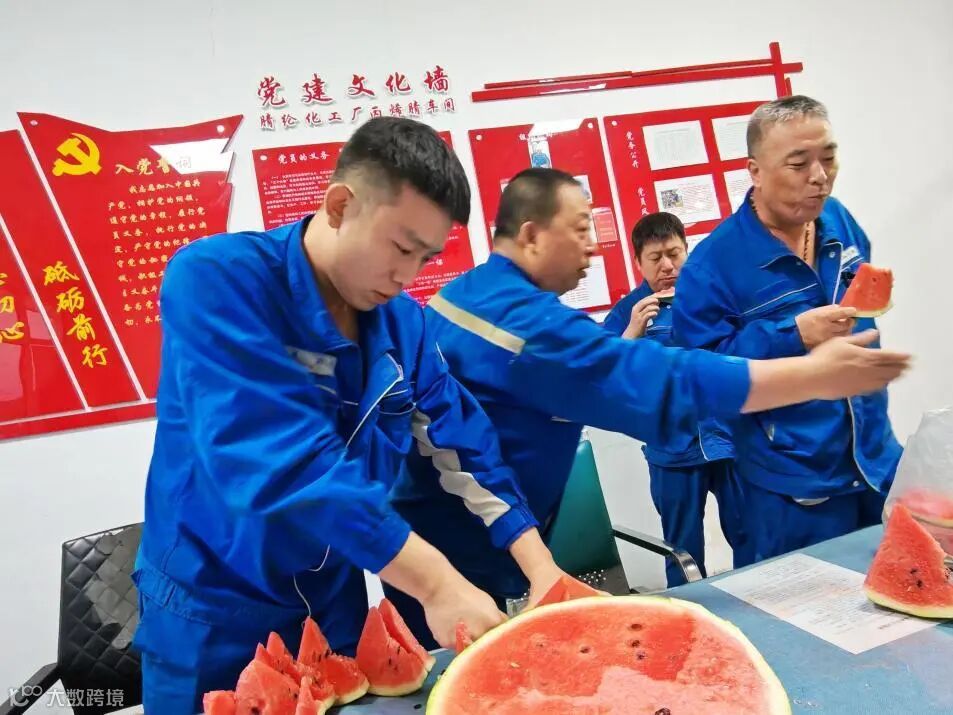 “这西瓜真甜,大热天吃一口,我们干活更有劲了!”红瓤黑籽的降暑西瓜成为消除疲惫的“充电宝”。腈纶部生产作业一区员工在分享工会送来的大西瓜时,每个人都感受到夏日的清凉和企业的温暖。