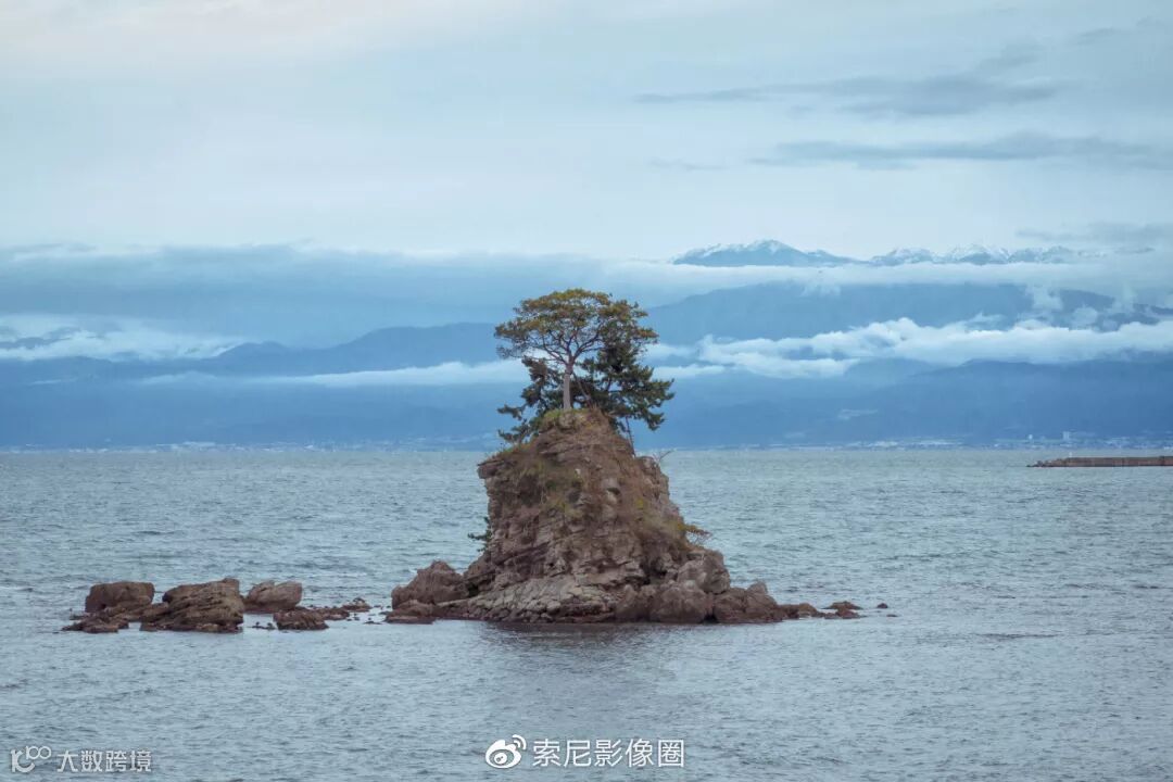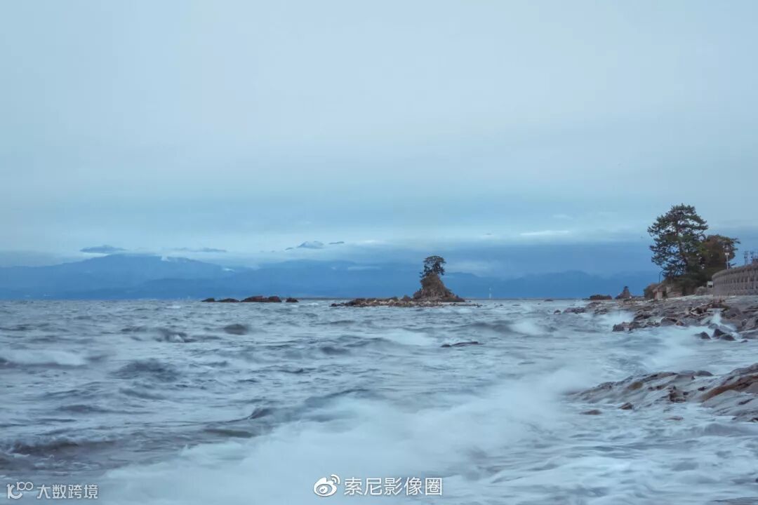 虽然天空阴云密布,远处的天空却裂开了一条口子,立山的峰顶从云中钻了出来。幸好这次带的是黑卡RX100 VII,没有更换镜头的时间,马上拍了起来。2种焦段给人完全不同的感觉,中焦的拍摄,前景的波浪,中景的女岩与背景的立山,形成了又纵深的画面层次。