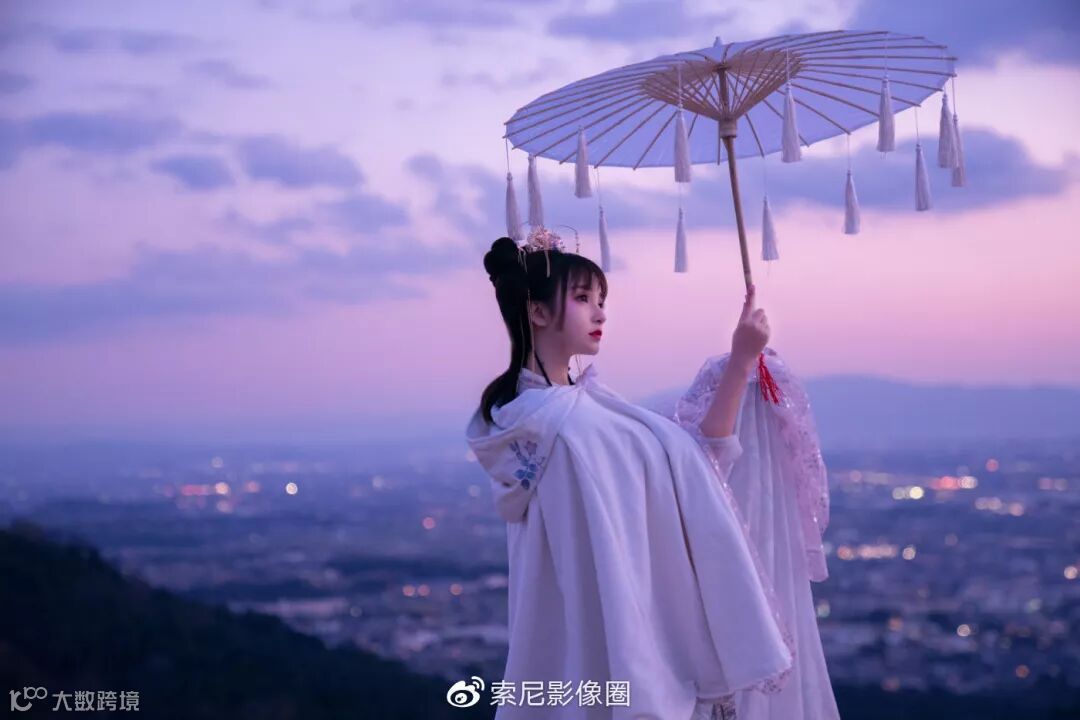 天气渐暗后利用晚霞余光作为人物面部的主光拍摄,非常柔和温暖的色彩,可以看到在虚化和夜景的光斑上也是保有索尼G大师镜头梦幻焦外。
