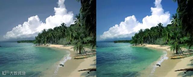 下图是个实例,开启自动白平衡拍出的左图中,海水呈灰色,而现实中的颜色则如右图所示。