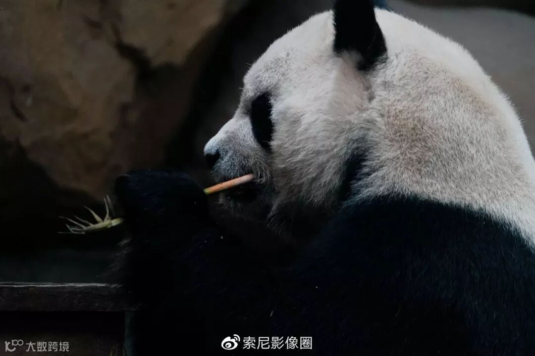 整个山魈园只有这2只在室外活动,天气炎热其他的都在室内乘凉。隔壁就是国宝大熊猫的地盘,国宝级别的待遇就是全封闭饲养,只能隔着围栏和玻璃围观,此时国宝正在享用美餐。