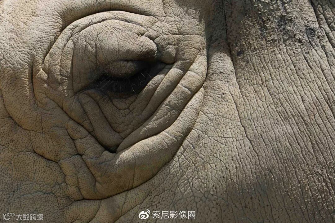 犀牛干燥的皮肤纹路非常清晰,放大100%再看一下。