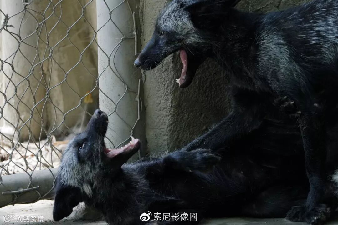 也有2只狐狸小朋友管他天气炎热只管打闹玩耍。