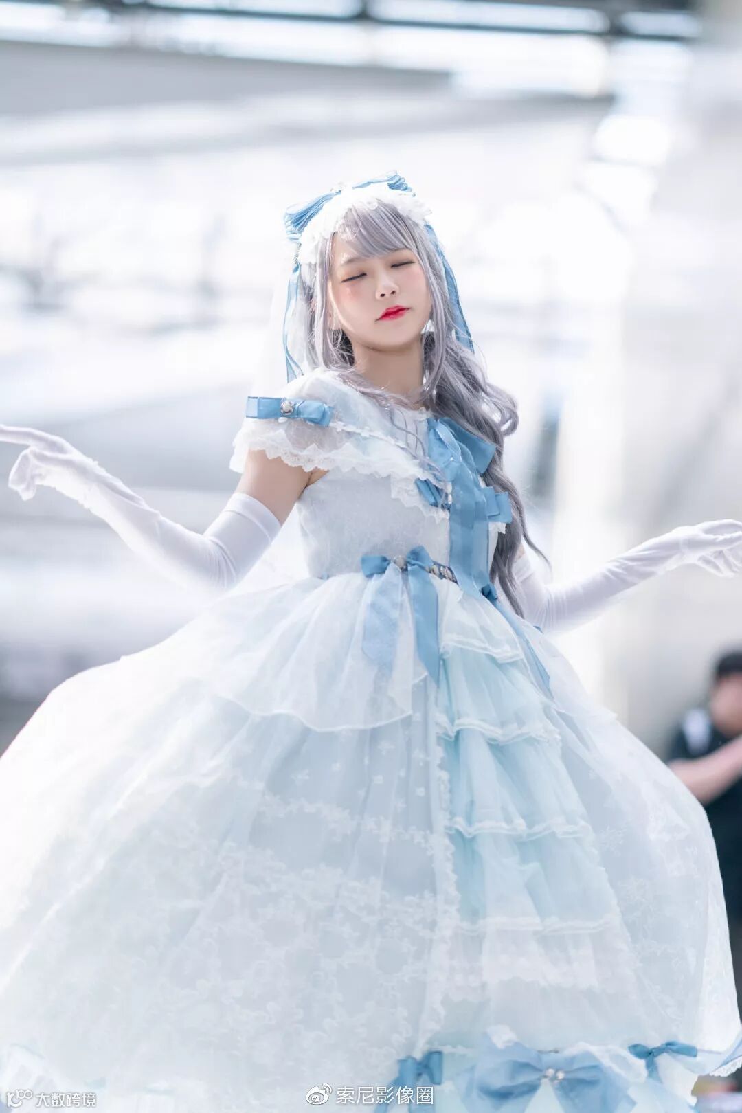 SEL135F18GM这支G大师镜头帮助我在漫展上轻松地将所有杂乱背景化为一片梦幻光斑, 在特写时也有最佳质感。利用路人走过的空隙高效拍摄,配合Alpha 7R III 10张/秒连拍和AF-C追焦性能,我们可以轻松拍摄人物甩起裙子的动态。