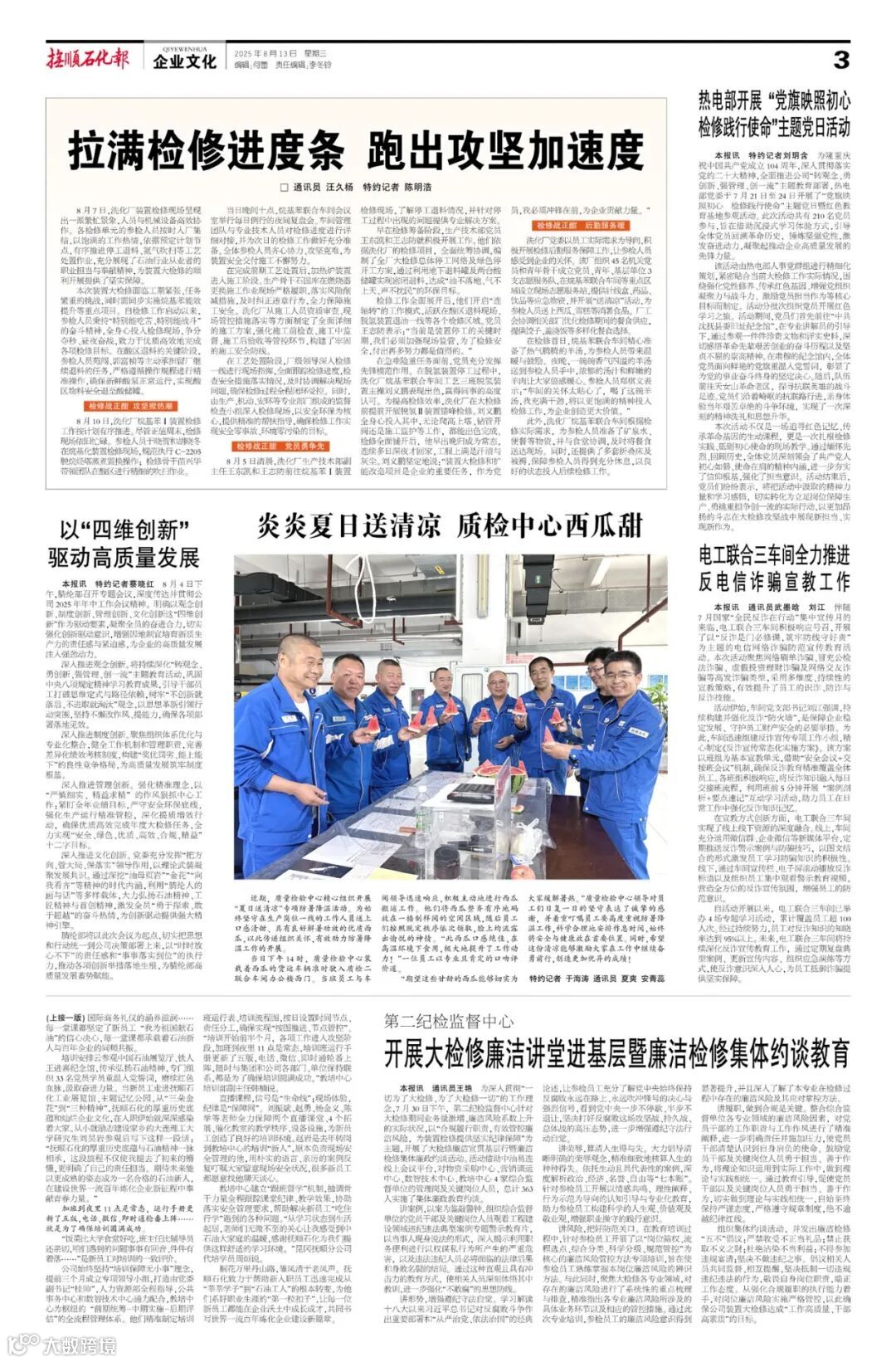 导读:《抚顺石化报》2025年8月13日