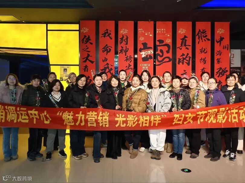 营销调运中心开展“魅力营销 光影相伴”妇女节观影活动,47位女员工齐聚新抚万达影院,共度欢乐节。活动现场,女员工们手持玫瑰,站在红色主题横幅前拍照,笑容满面,尽显身为石化人与营销调运人的自豪。此次活动是对女员工工作的肯定,既丰富了她们的业余生活,也让大家感受到自身价值与团队力量,激励更多女工为建设一流现代化炼化企业贡献巾帼力量 。