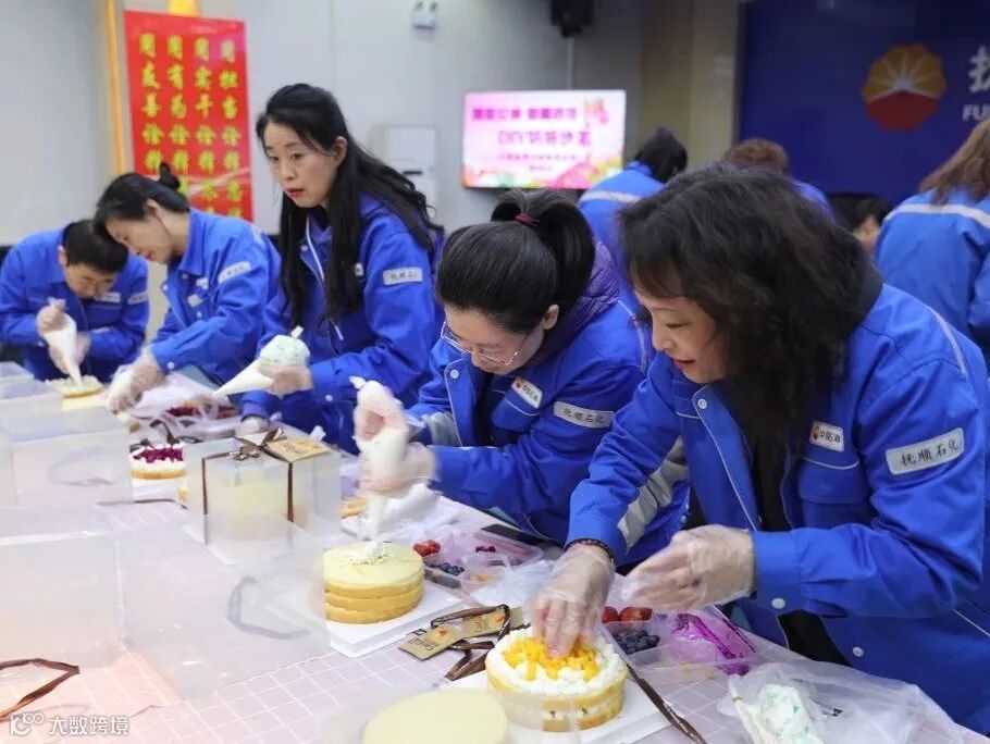 公共事务中心(含离退)组织50名优秀女工代表清理东洲文体馆卫生、清洗通勤车座套,扮靓岗位,为员工营造舒适环境。组织60名优秀女工代表听取《学会关爱自我·做幸福女人》女性知识讲座,提升自我关爱意识。组织60名优秀女工代表参与烘焙蛋糕技能培训,既丰富女工生活,又助力女工提升自我,以更好状态迎接工作与生活 。