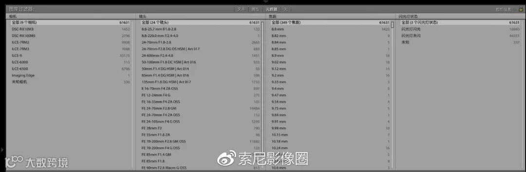 在LIGHTROOM中,对2017年以来,自己使用的器材信息进行了一个筛选。