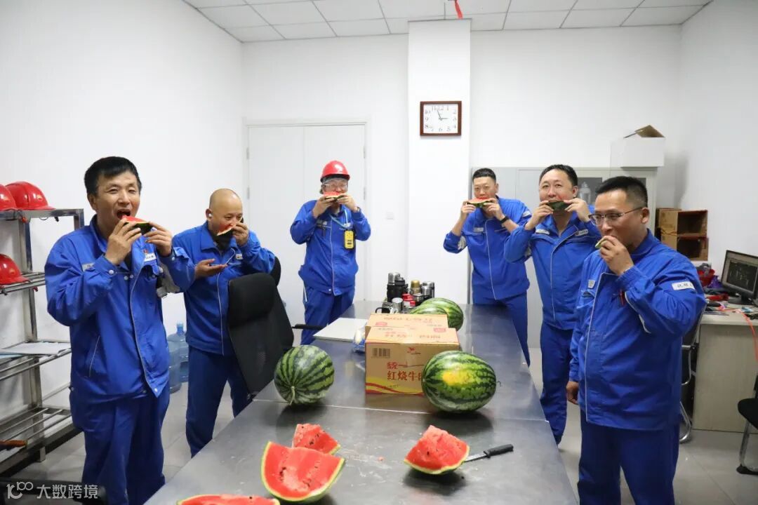 为坚守在酷暑中奋战的一线员工送去清凉,希望他们在搞好生产建设的同时,要注意安全生产和防暑降温,确保身体健康和生产安全。在油蜡生产联合车间现场,车间主任为当班员工分发西瓜,缓解了紧张工作中的疲惫。