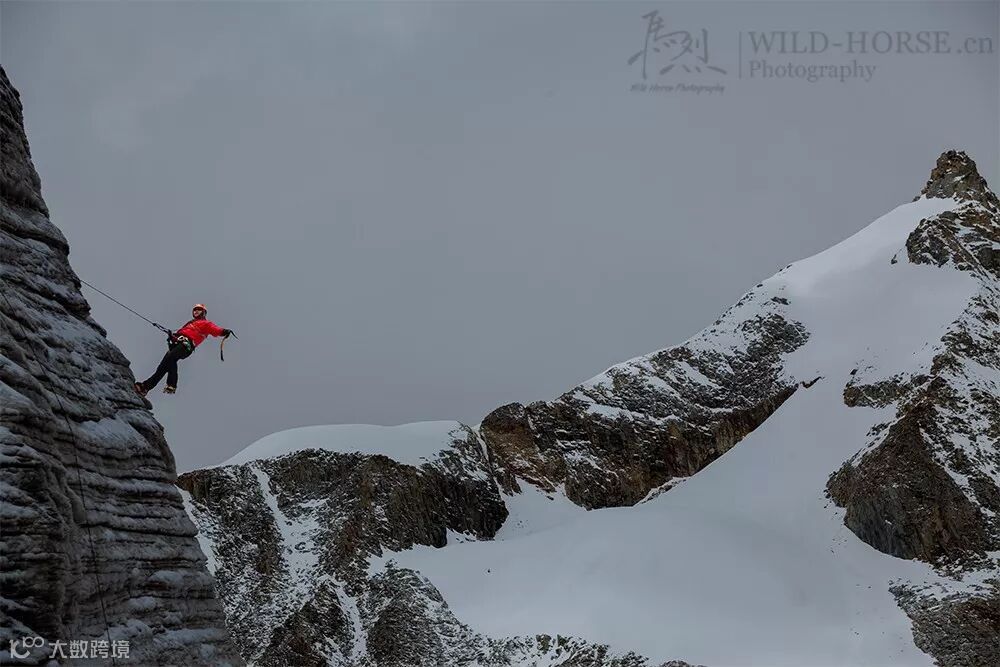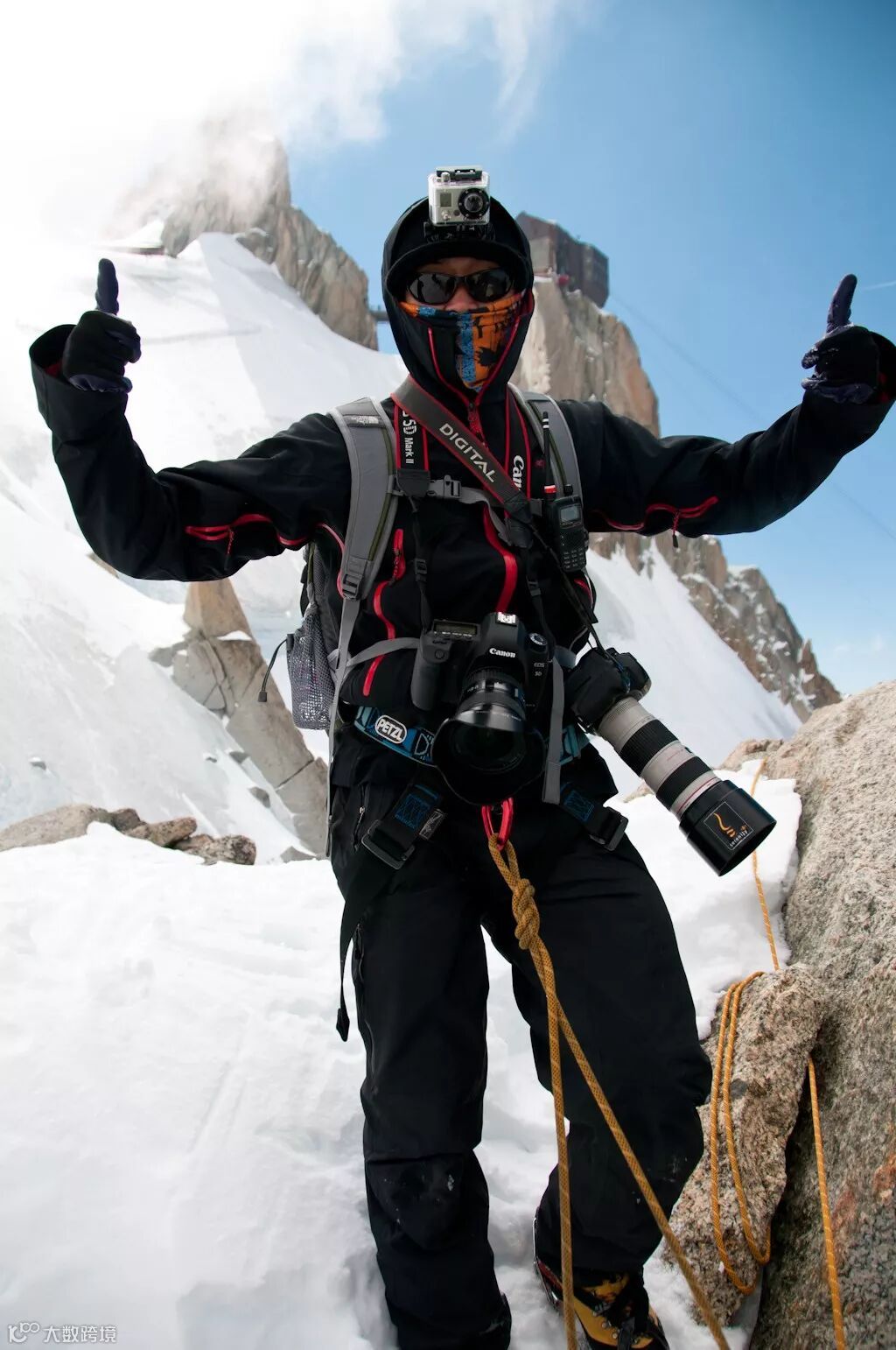 拍摄登山运动,通常要交代更多的环境,所以人物在画面中所占比例较小,可以通过构图和色彩来突出人物。
