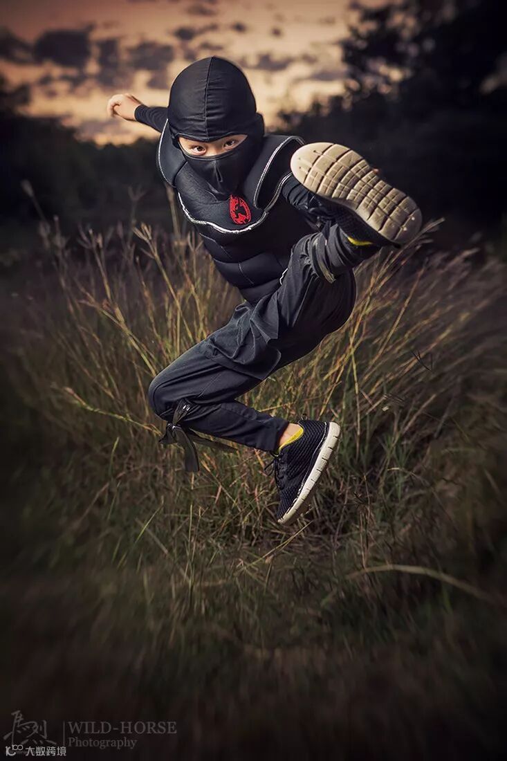 每个人都有自己的英雄梦,当看到壮壮的这身忍者服,和他商定在天黑时拍摄,这样会更具神秘感;