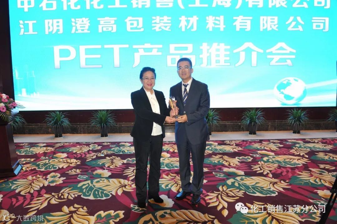 2018年11月21日,召开澄星集团PET产品推介会,总经理房琳向澄星集团颁发了“优质合作伙伴”奖杯。