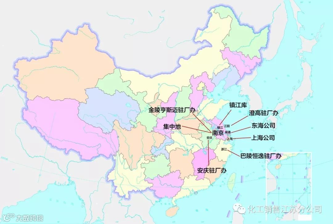 集中地位于江苏省南京市,在上海自贸区设有中石化化工销售(上海)有限公司,在江苏南通设有南通东海石油化工有限公司,在中国石化安庆分公司、南京金陵亨斯迈新材料有限责任公司、安庆炼化曙光丁辛醇化工有限公司、浙江巴陵恒逸己内酰胺有限责任公司、江阴澄高包装材料有限公司设有办事处,在镇江拥有液体化工库。
