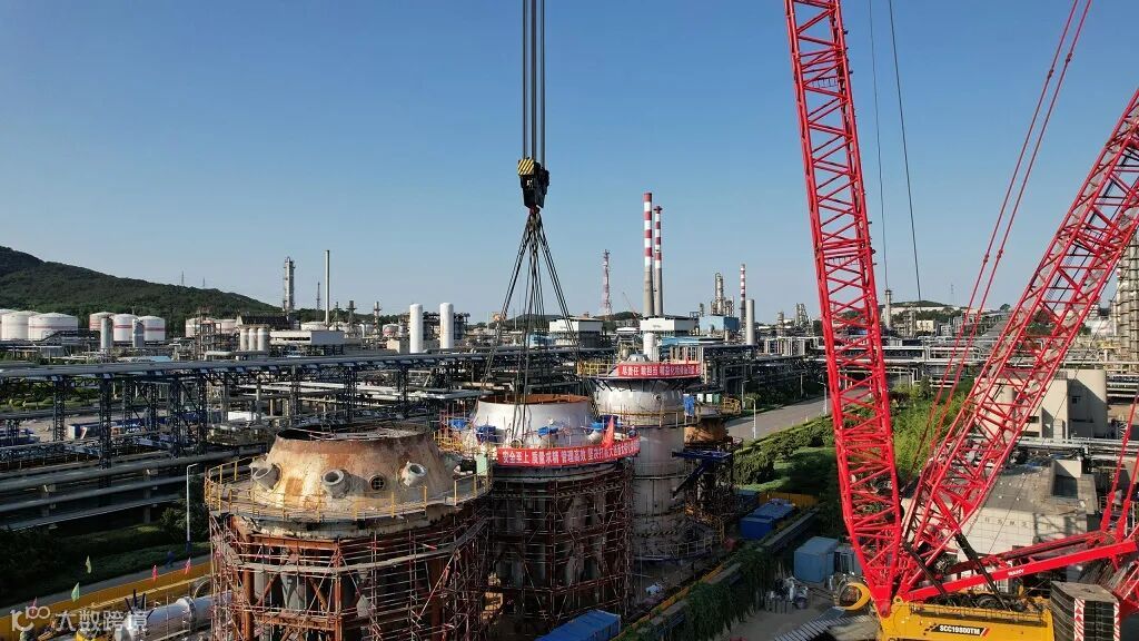 6月27日早5时,1600吨履带式吊车随着指令缓缓升起吊臂。当引擎声响彻现场,340吨“庞然大物”成功从专业框架中吊出。十几分钟,340吨第一再生器锥段旋风气提段被送至60米高空。