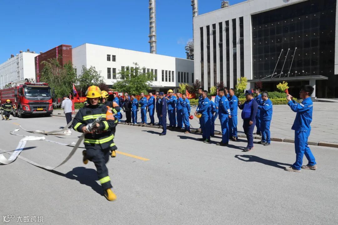 现场演示了原地佩戴空气呼吸器、火场徒手救人、固定地上消防栓连接操作、分水器前水带延长操,并进行了车辆操法表演;还邀请员工群众近距离接触消防、体验消防,实操培训了穿戴灭火防护服、2人一盘水带连接和回收、固定地上消防栓连接等科目。在烯烃厂办公楼模拟火灾现场,组织了消防逃生演练,提高公众增强自防自救和应对火灾的能力。
