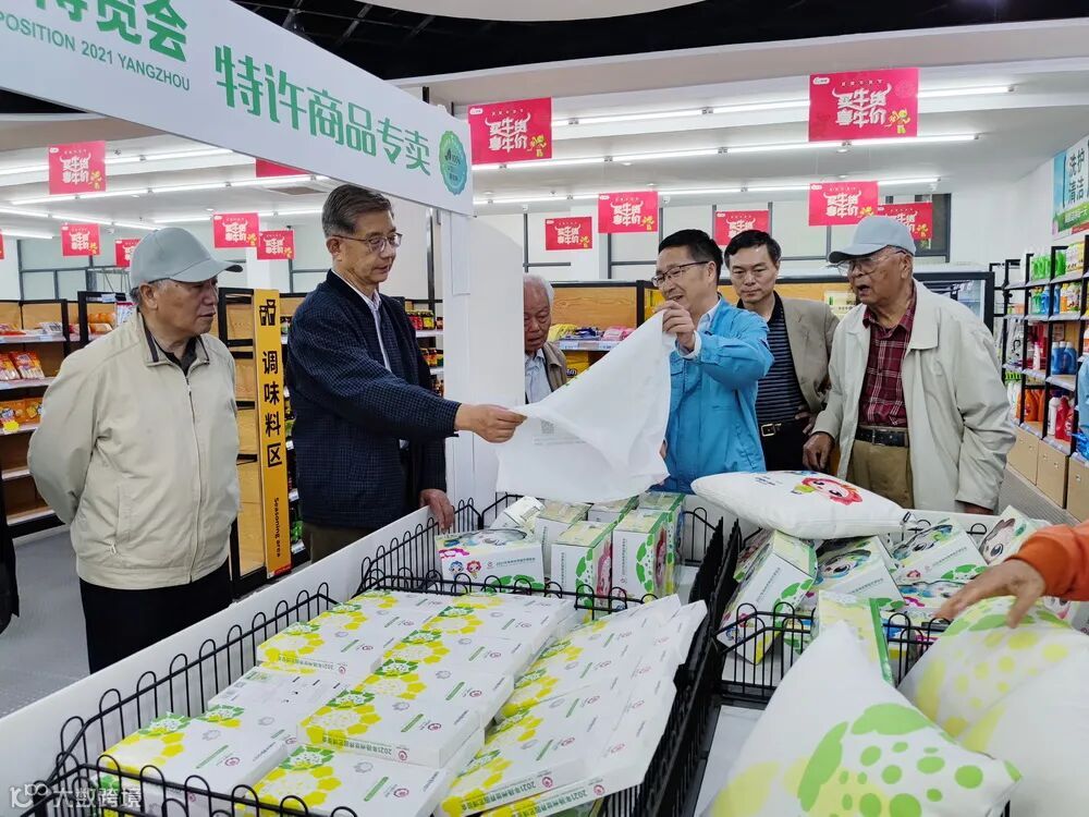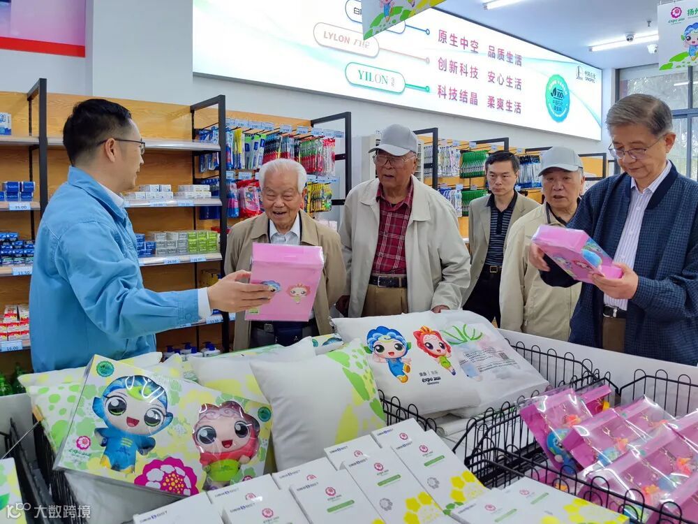 在世园会特许商品专卖区,老领导们不仅对世园会5款定制产品爱不释手,更是将目光停留在了产品外包装使用的“可降解塑料袋”上,特别嘱咐一定要抓住产业发展大势,助力中国石化实现碳达峰、碳中和。
