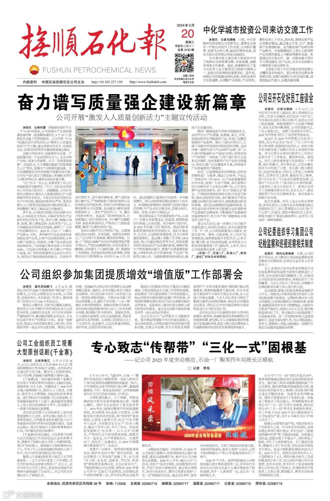 导读:《抚顺石化报》2024年3月20日