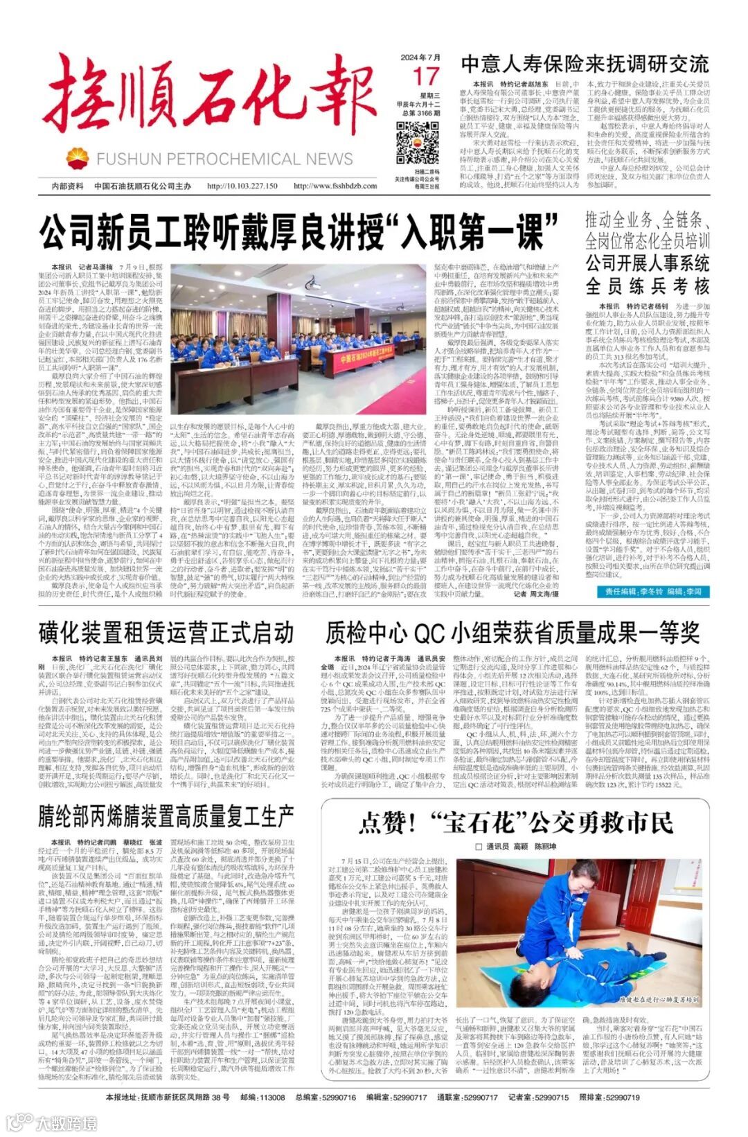 导读:《抚顺石化报》2024年7月17日