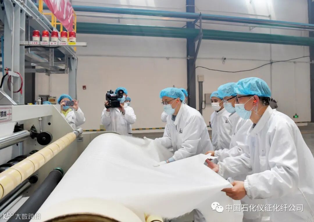 仪征化纤闻令而动,从零起步,应急跨界,特事特办,集中力量办大事。经过600多名参建者35天昼夜奋战,3月29日,仪征化纤首条年产500吨熔喷布生产线投产成功,比计划提前18天。