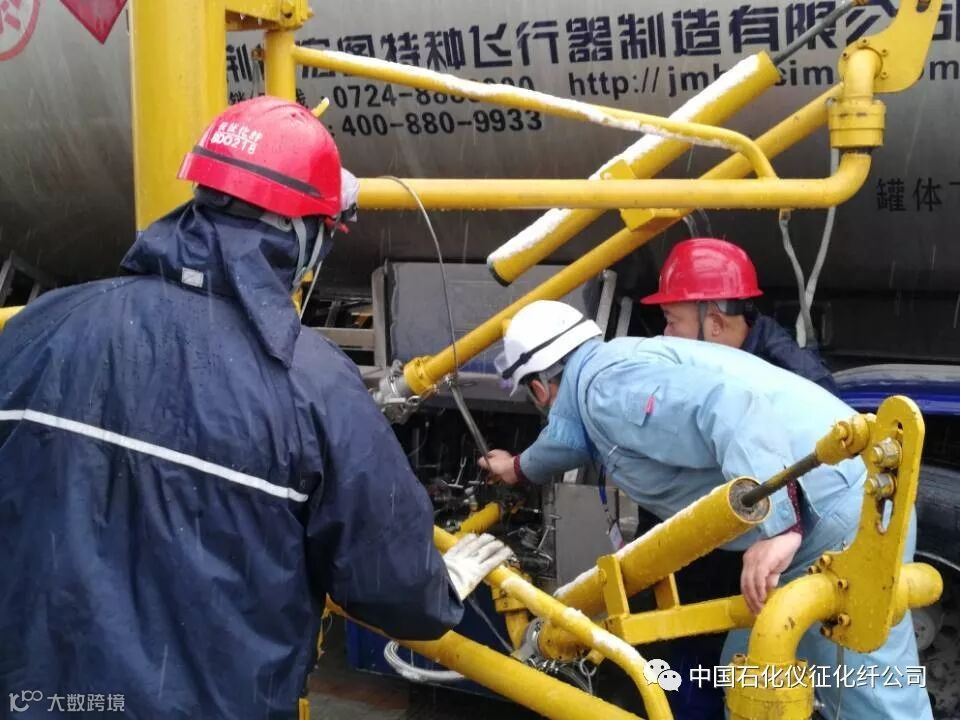 BDO部生产运行人员在雪中认真检查正丁烷卸车安全状况。熊新国 摄